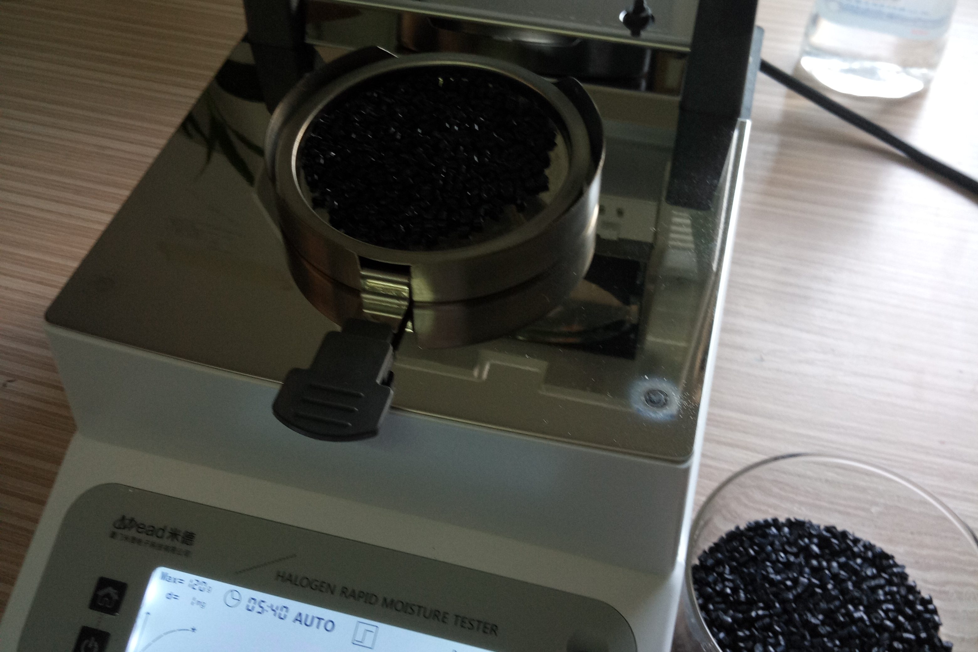 再生尼龍水分測試儀使用方法?? 測試再生尼龍顆粒:倒出8克左右再生尼龍料顆粒倒在不銹鋼托盤中,為了使測試過程中…